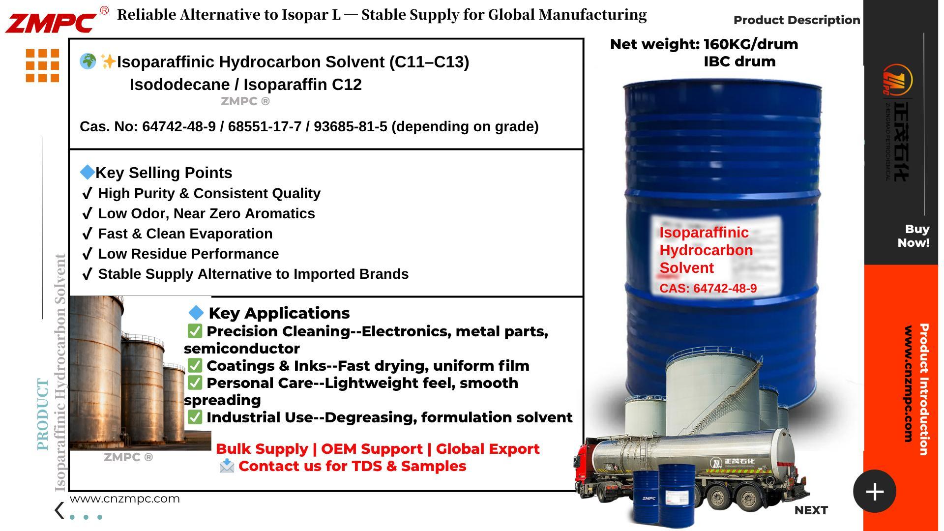 ZMPC จัดหา ตัวทำละลายไอโซพาราฟินิกไฮโดรคาร์บอน (C11–C13) ที่มีความบริสุทธิ์สูง ให้กับผู้ผลิตทั่วโลก